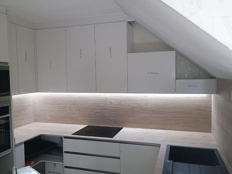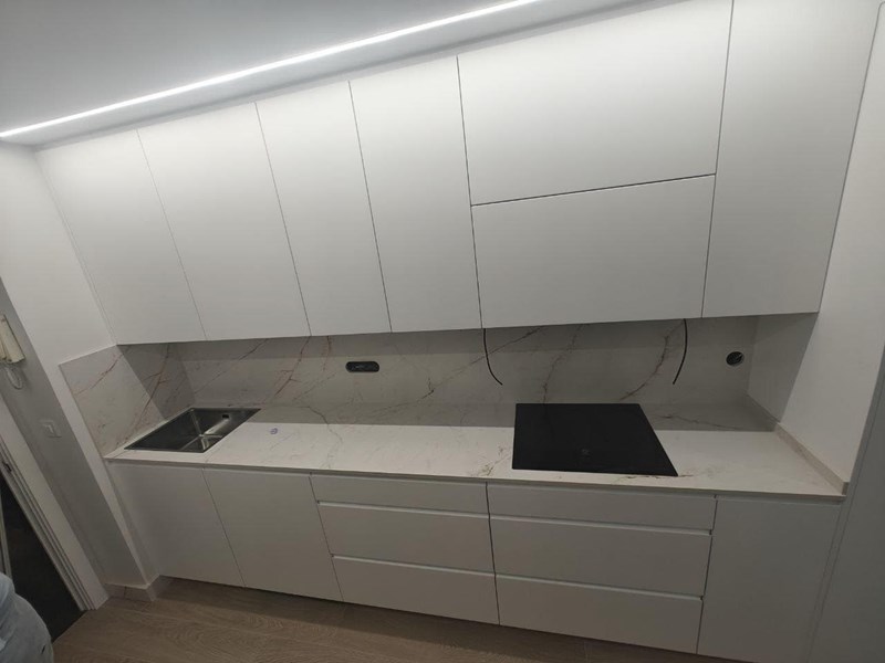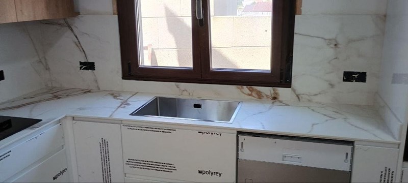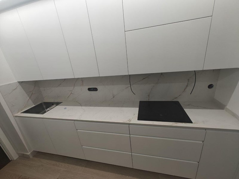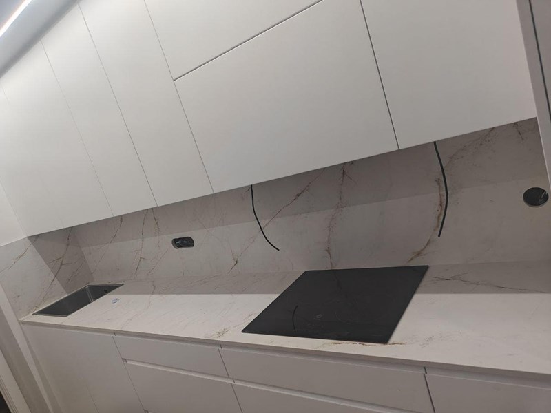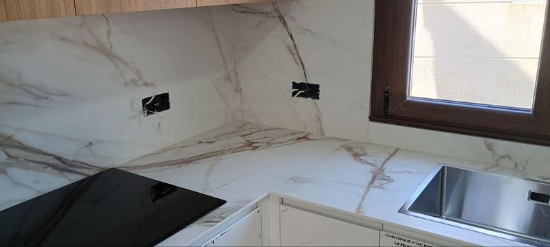 Bianco Absoluto 1.2 Cm encimera y pared completa Encimera de Bianco Absoluto para cocina. Elegancia y resistencia en un solo lugar. Descubre la belleza de Bianco Absoluto en tu hogar.
