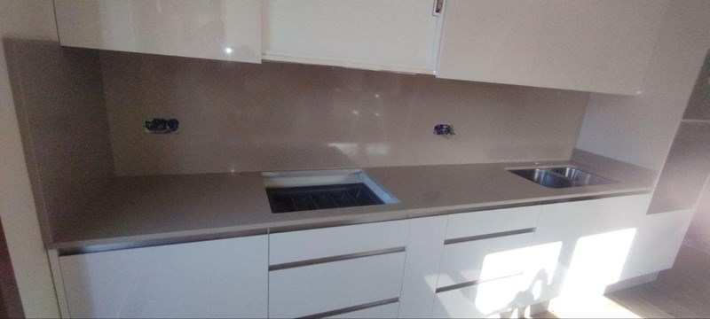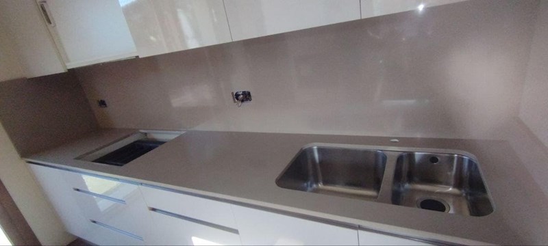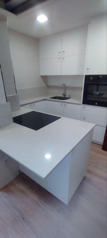 Blanco cristal encimeraMuebles blancos y sin chapeado porque irá de cristal