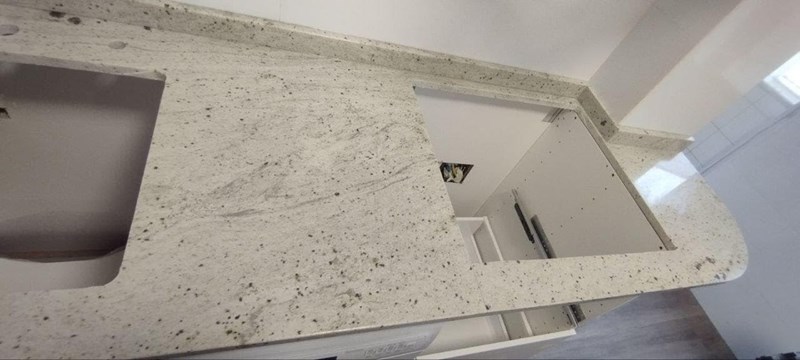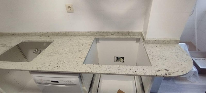 Azores Encimera 2Granito con tonos blanquecinos y amarillos que puede parecen dificil de combinar pero el resultado es increible